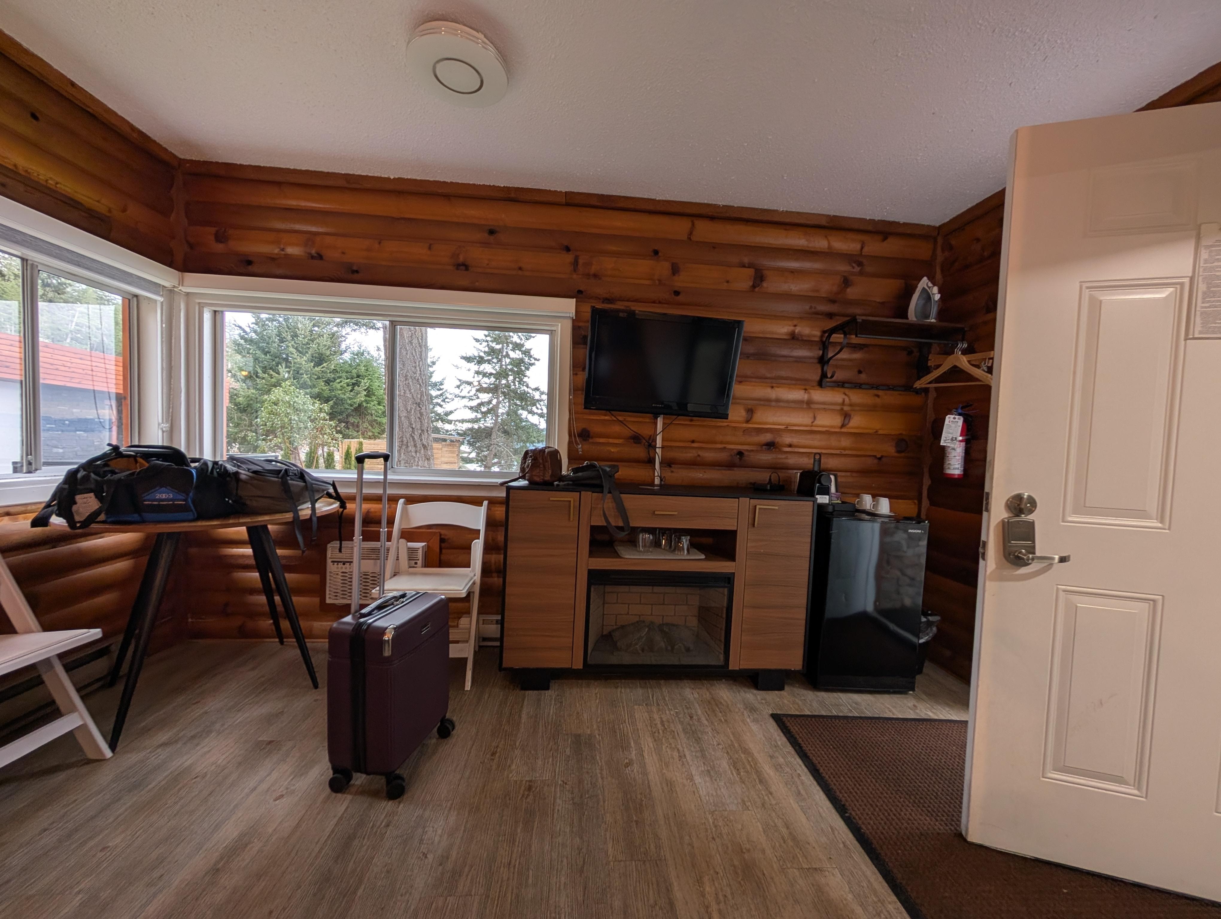 A few problems with the cabin though. The hot water cut out right when my partner was in the shower washing her hair - so she had to finish with cold water. Also the electrical power circuit breaker kept turning off whenever more than one electrical appliance was being used. For example, when the electrical fireplace/space heater was on at the same time as the electric kettle, they would both switch off. And then when my partner used the blow dryer, all the power in the in cabin went off, lights and everything. There was a circuit breaker panel in the room and when I flicked the switch off and then back on, the power returned. But it kept happening. When I reported the matter to the front desk, they sent maintenance to look at it and later reported both the hot water and electricity as fixed. The hot water had returned but the electricity kept switching off for the rest of the trip. I told them this at checkout and they offered no apology or discount but just said, "We know why this happened, and will fix it."