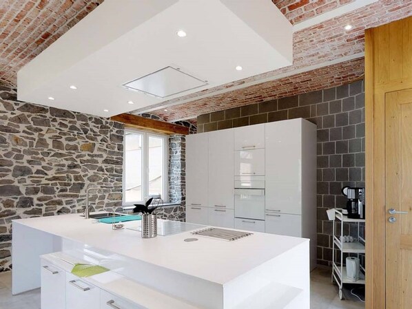Dit vakantiehuis in Hamois is voorzien van een keuken en een open haard