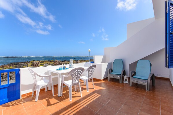 Het appartement is gelegen aan de noordkust van Lanzarote, direct aan zee in het dorp Órzola en heeft een ruim terras met een adembenemend uitzicht op de zee. Gelegen op de begane grond met karakteristieke koningsblauwe luiken en maritieme decoratie, het appartement heeft een ruime woon-eetkamer, een geïntegreerde goed uitgeruste keuken, 2 slaapkamers (een met 2 eenpersoonsbedden) en een badkamer voor 4 personen. Tot de faciliteiten behoren wifi, een wasmachine, een tv en een kinderstoel. Op uw terras, dat is ingericht met een eethoek en stoelen, kunt u uw ochtend beginnen met de frisse geur van de oceaan en een warme kop koffie. Ontspan op ligbedden onder de blauwe lucht met vrij uitzicht op de oceaan en geniet van een heerlijke maaltijd met het geluid van de oceaan op de achtergrond. Hier kunt u echt ontsnappen aan de dagelijkse stress en de prachtige natuur van Lanzarote van dichtbij ervaren. Een supermarkt en een beperkte selectie restaurants bevinden zich op minder dan 700 meter of 8 minuten lopen van het appartement. U kunt ook de haven van Órzola bereiken, op 1 km of 12 minuten lopen van de veerboot naar het eiland La Graciosa. Ten slotte wacht het turquoise blauwe water u op vanaf het zandstrand Caletón Blanco, dat op ongeveer 2 km of 4 minuten rijden ligt. Parkeren op straat is mogelijk. Beddengoed en handdoeken zijn bij de prijs inbegrepen.
