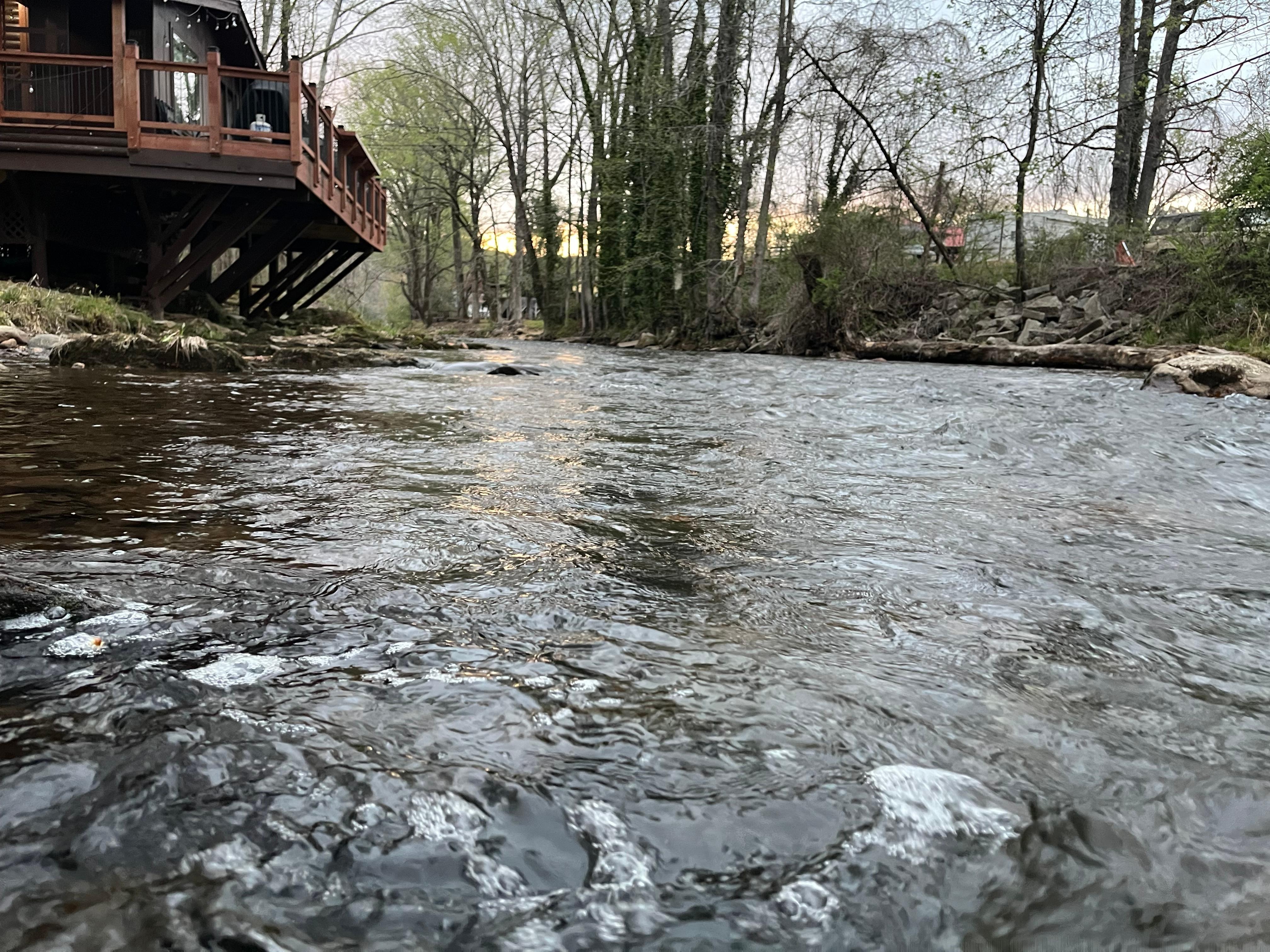 Gasten zullen echt genieten van River's Edge. Deze rustieke hut met 2 slaapkamers en 2 badkamers is de perfecte plek om van de natuur te genieten terwijl u luistert naar de geluiden van de rivier die voorbij rent vanaf het open dek dat over de rivier hangt. Een vissersparadijs - forelvissen vlak voor uw eigen hut - vang uw limiet op het prachtige heldere water van de snelstromende rivier de Chattahoochee.
