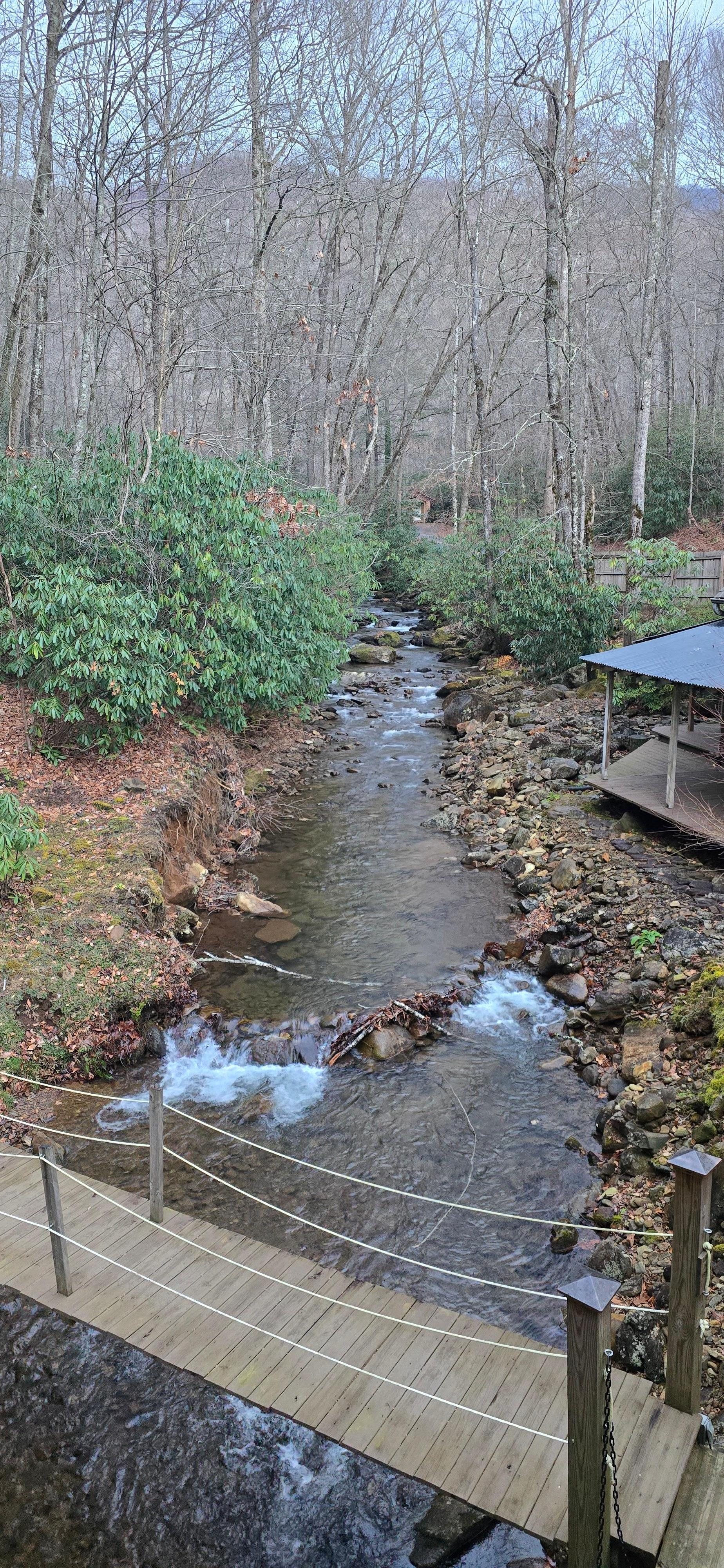 Ontsnap naar dit ruime huis met kreekzijde hot tub! We hopen dat je net zo van de charme van dit huis zult houden als wij. Oorspronkelijk gebouwd in de vroege jaren 1900 als een 3-kamer cabine, blijven die 3 kamers met de originele hardhouten vloeren, tand en groef lambrisering en originele binnendeuren. Met de toevoegingen (zowel naar boven als naar buiten!) en renovaties, het is klaar voor uw familie en vrienden om van te genieten! Gelegen aan Wayah Creek, op slechts 8 km van het schilderachtige Wayah Bald en de Appalachian Trail, zal dit huis uw verwachtingen voor comfort, gemak en ontspanning overtreffen. Geniet van luie dagen en sterren verlichte nachten loungen in de 6-persoons Hot Springs Grande hot tub met uitzicht op het water of loop over onze brug voor een wandeling in het Nantahala National Forest! Maak deze thuisbasis voor alles wat er te ontdekken valt in het prachtige West-Noord-Carolina, van overvloedige watervallen en wildwatervaren tot edelsteenwinning en alles daartussenin! Aanhangwagen uw boot en bezoek enkele van de prachtige bergmeren in het gebied .... Lake Nantahala is een mooie 10 mijl rijden. En vergeet je hengels niet !!!