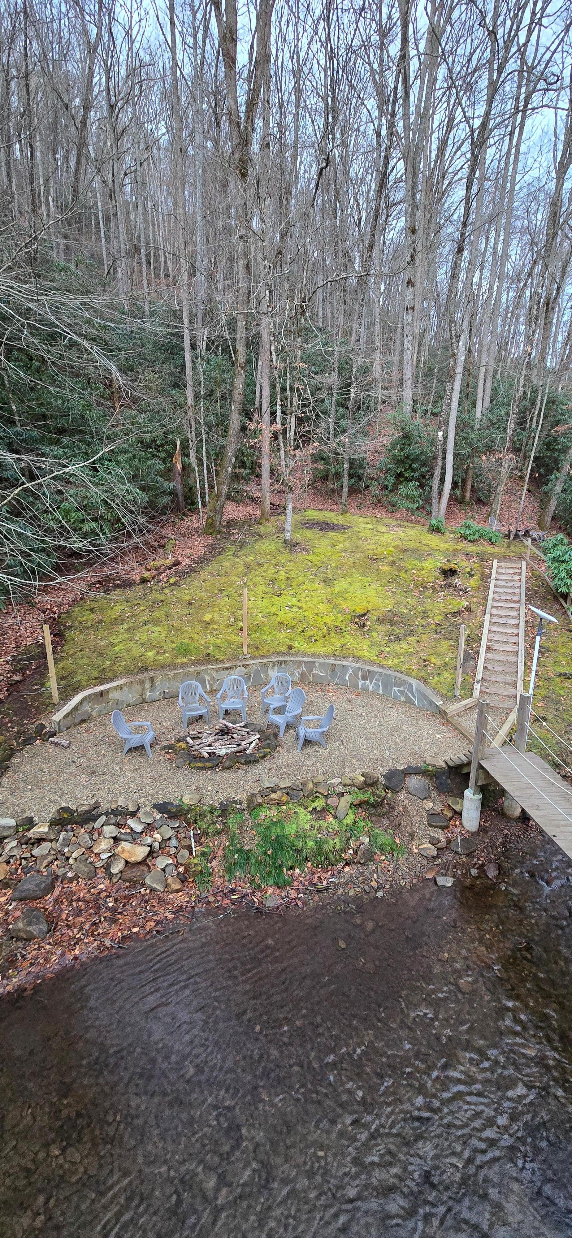 Binnen in huis ervaar je het comfort van supersnel internet en Dish TV-programmering op onze 3 nieuwe SmartTV's. Onze volledig gerenoveerde open keuken met ultramoderne gasfornuis zal de beste chef-kok in uw groep bevallen! De grote bijkeuken heeft voldoende ruimte voor al uw boodschappen en de kasten zijn gevuld met potten, pannen, gadgets en zelfs een crockpot (zei iemand gekookte pinda's ?!). Kom langs onze bar van 100 jaar oude populier of ontspan in de overvolle stoelen in de rivierkamer terwijl je luistert naar het geluid van stromend water. Houd uzelf in de winter lekker warm naast de open haard. Geniet van de warmte van de verwarmde marmeren vloeren in de hal en het bad boven!