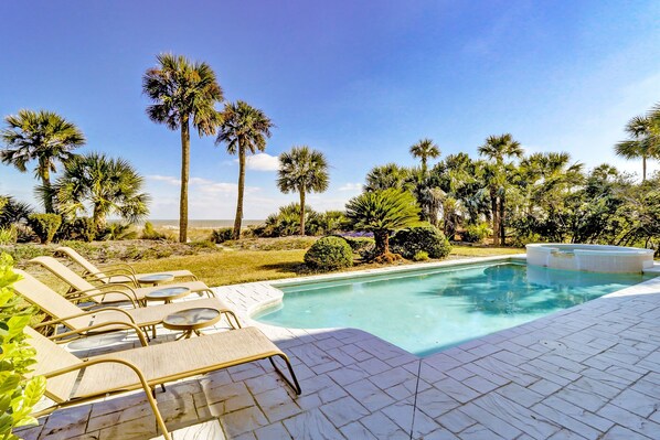 Op het strand, met een buitenzwembad, dicht bij Palmetto Dunes Club