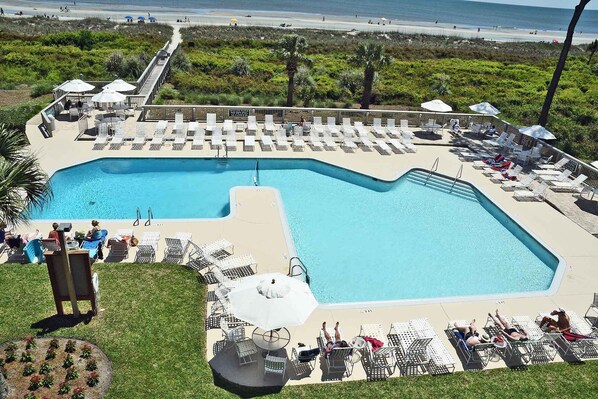 Blijf aan zee en geniet van vele voordelen van een complex aan de oceaan zonder prijzen aan de oceaan te betalen. Gasten die in Ocean One 422 verblijven, genieten van een uitzicht op het landschap en hoeven geen straat over te steken om het zwembad aan de oceaan of de Atlantische Oceaan te bereiken. 4e verdieping oceaan appartement voor 8 personen met comfort. Kingsize bed in de slaapkamer, twee koninginnen in slaapkamer 2, twee tweelingen in slaapkamer 3 en een slaapbank in de woonkamer. Na uren in de branding spoelen vakantiegangers onder de buitendouche op het privéstrand van het complex en duiken vervolgens in het zwembad aan de oceaan.