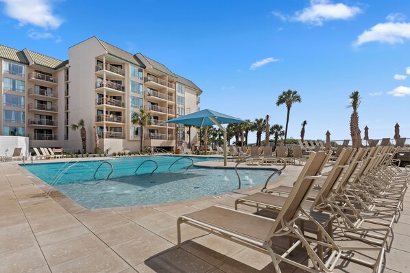 VILLAMARE- is een top rated resort is bekend om zijn prachtige terrein, lagunes, health club met overdekt verwarmd zwembad, verwarmde jacuzzi en stoombad en een uitgebreide training faciliteit. Deze diensten en voorzieningen zijn opgenomen zonder kosten. Het buitenbad is gelegen rond een 3 tier dek om te zonnen en het bekijken van de oceaan. Palmbomen rond het dek om schaduw te bieden voor iedereen die hun paraplu aanvragen. Naast het grote zwembad is een verwarmde jacuzzi, peuterbad en een cabana. Het buitenzwembad is verwarmd tijdens de maanden oktober, november, maart en april Een tweede dek aan het strand is voorzien van een nieuw toegevoegde grillen gebied met 4 gebouwd in grills.