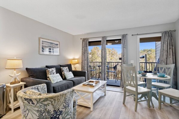 Unwind in this cozy, family-friendly 1-bedroom, 1-bathroom villa, offering 590 square feet of peaceful, inviting space. Nestled on the tranquil side of the resort in the Ocean Villas, this condo ensures you can escape the hustle and bustle—no parking lot noise, just pure relaxation. Step out onto your secluded balcony and enjoy a quiet, restorative moment in the fresh air.