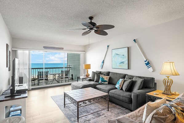 Spacious Open-Concept Living – Large 950+ sq. ft. layout with Gulf-facing living, dining, and kitchen areas