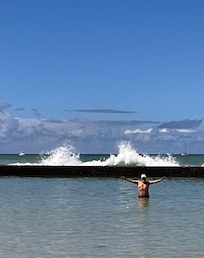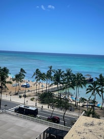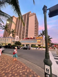 Het hotel ligt aan het einde van waikiki beach. Maar alles is te belopen want waikiki beach is niet zo groot/lang. Gescheiden door weg van het strand. Vlak naast Honolulu Zoo en Diamond head krater.