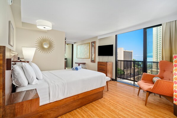 Our suite was lovely, spacious for the two of us. Loved the views, loved that there was beach chairs we could use. We could not connect the TV to the WiFi during our entire stay(1 week), tried 3 different passwords neither worked. Asked the host and he replied once about it, the second time I told him we couldn’t connect the tv to WiFi he never replied back. We asked the front desk for beach towels because our room did not have any and they told us our host was to supply those. So no WiFi and no beach towels. Minimal kitchen utensils, so keep that in mind. Other than that it was a wonderful stay, we hardly were at the suite most of the stay!
