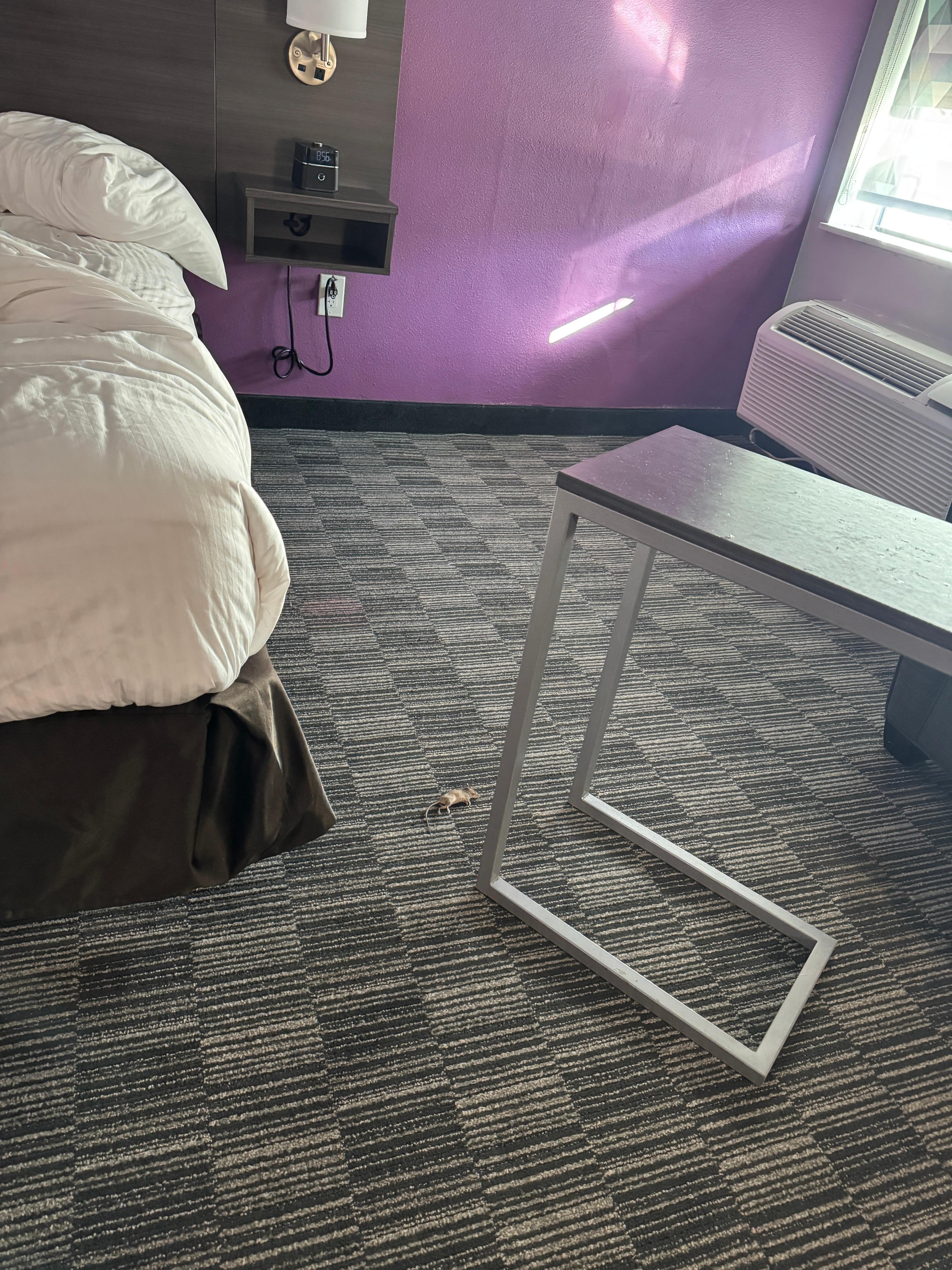 I woke up to a dead rat in room 218.