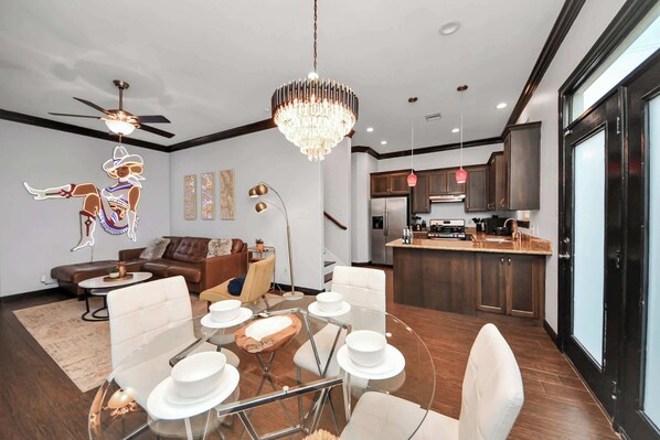 Step into a world of unique decor and thoughtful design. The open-plan living area invites you to relax with your favorite shows on the HD streaming TV. Stay connected with super-fast Wi-Fi throughout the home.