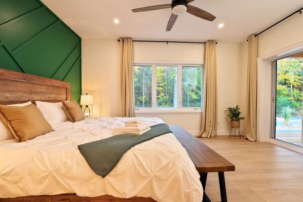Embark on a family wellness journey at our Nordic farmhouse-style Cottage in Muskoka. Unwind in the wisteria-adorned hot tub or by the firepit, nestled in Muskoka chairs. This bungalow features airy ceilings, expansive windows, and a modern fireplace. While the en-suite offers a rejuvenating frameless shower and deep tub. The Muskoka river is 250m away, Port Sydney Beach a 10-min drive. Embrace year-round family fun and wellness. Your rejuvenating escape begins here.