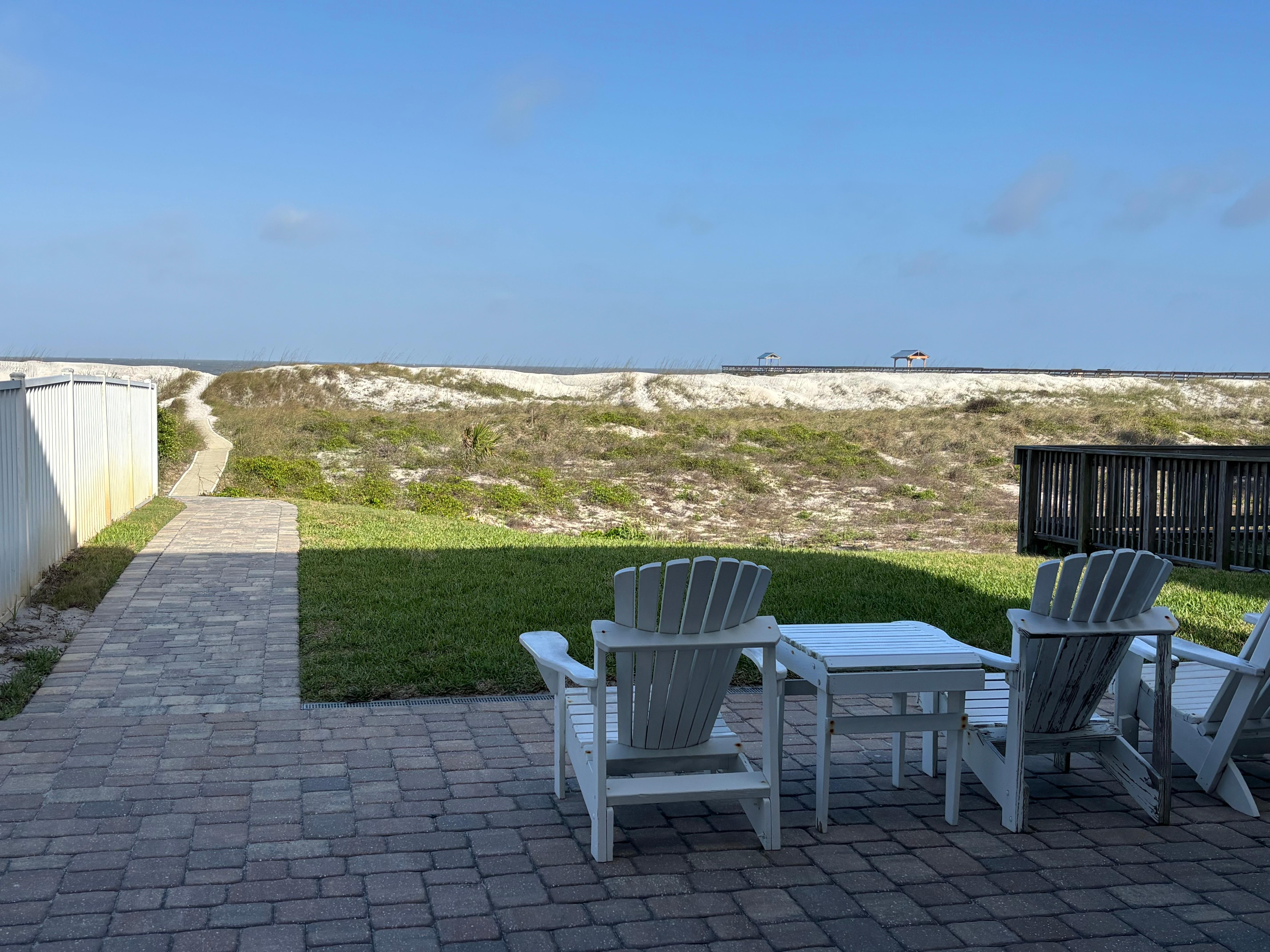 Room was very nice and appeared to the been redone recently, very comfortable. Ocean is a short walk beyond the dunes, so we had a great beach walk. Too cool to use the pool but it looked inviting for another day. We actually prefer a place without a "free" breakfast and found a fantastic place to eat in Fernandina where there are lots of options.