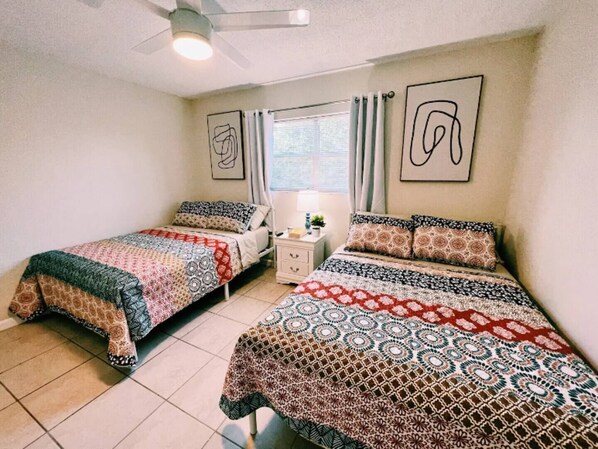 The room is large and with plenty of natural light coming through the window. We have a 2 comfortable full-size beds to enjoy a great night's sleep with different options for sleeping arrangements and also a large closet to keep your room tidy and luggage out of sight. There is a 42-inch Roku TV in the room to enjoy a movie before going to bed.