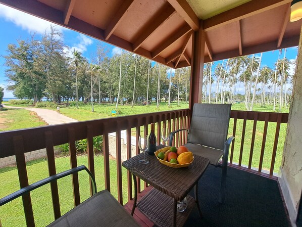 Condo keuken is volledig uitgerust voor "thuis" maaltijden en de woonkamer is uitgerust met een flatscreen-tv. Patio gelegen off van de keuken is zeer geschikt voor 's ochtends koffie of thee. Muntautomaten wasmachine / droger gelegen op het terrein. Centraal gelegen aan de oostelijke oever van Kauai's maken dit de perfecte Kauai vakantiewoning.