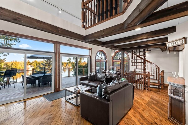 The Gorgeous boothouse ligt direct aan Sturgeon Lake, een apart gebouw met twee verdiepingen. De master slaapkamer op de vliering heeft een queensize bed, uitschuifbaar bed, inloopkast en een spectaculair uitzicht op het meer. Gloednieuwe volledige keuken met roestvrijstalen koelkast, fornuis, Jenn-air-doortrekoven, vaatwasser, magnetron, broodrooster, koffiezetapparaat en blender. Het open concept graniet en leisteen keuken mondt uit in de grote eetkamer met zitplaatsen voor 4 met extra zitplaatsen voor 4 aan de ontbijttafel. De grote woonkamer is erg gezellig met een 40-inch flatscreen-tv, een comfortabele bank en ramen van vloer tot plafond die veel daglicht binnenlaten en uitzicht op het water. De tweede slaapkamer bevindt zich op het hoogste niveau met een queen size bed en een kleine kast. De begane grond wasruimte heeft een ligbad, douche en wastafel op voetstuk.
