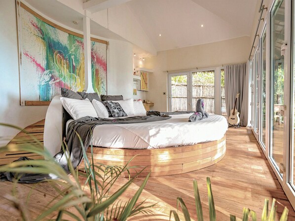 - Custom made round double bed (spacious 2m80 diameter),