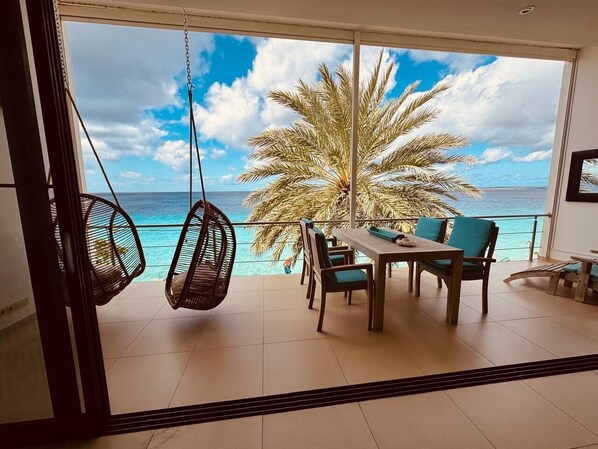 Beach house ligt aan de kristalheldere Caribische zee.