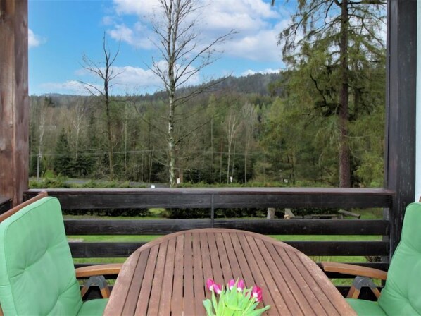 4-kamers cottage 61 m2 op 2 verdiepingen. Woonkamer met 1 divanbed, eettafel en Sat-TV. 1 kamer met 1 bed. Keuken (oven, afwasmachine, 4 keramische glas kookplaten, broodrooster, waterkoker, magnetron, elektrische koffiemachine). Douche, aparte WC. Elektrische verwarming. Bovenverdieping: 2 kamers, elke kamer heeft 1 2-pers bed. Balkon, terras. Terrasmeubelen, balkonmeubilair. Uitzicht op het landschap. Ter beschikking: wasmachine. Internet (WiFi, gratis). Geschikt voor families. Rookvrij huis. Maximaal 2 huisdieren/honden toegestaan.