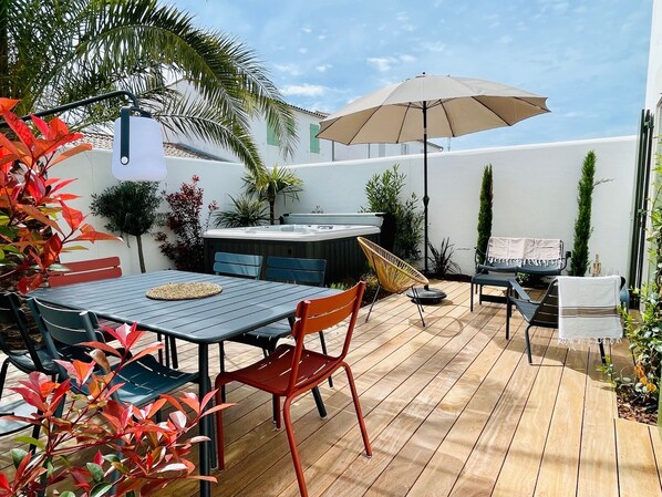 Dit vakantiehuis in La Flotte ligt binnen 10 minuten lopen van Golf van Biskaje en Haven van La Flotte. Ook Plage de l'Arnerault en La Cible liggen binnen 5 km afstand.
