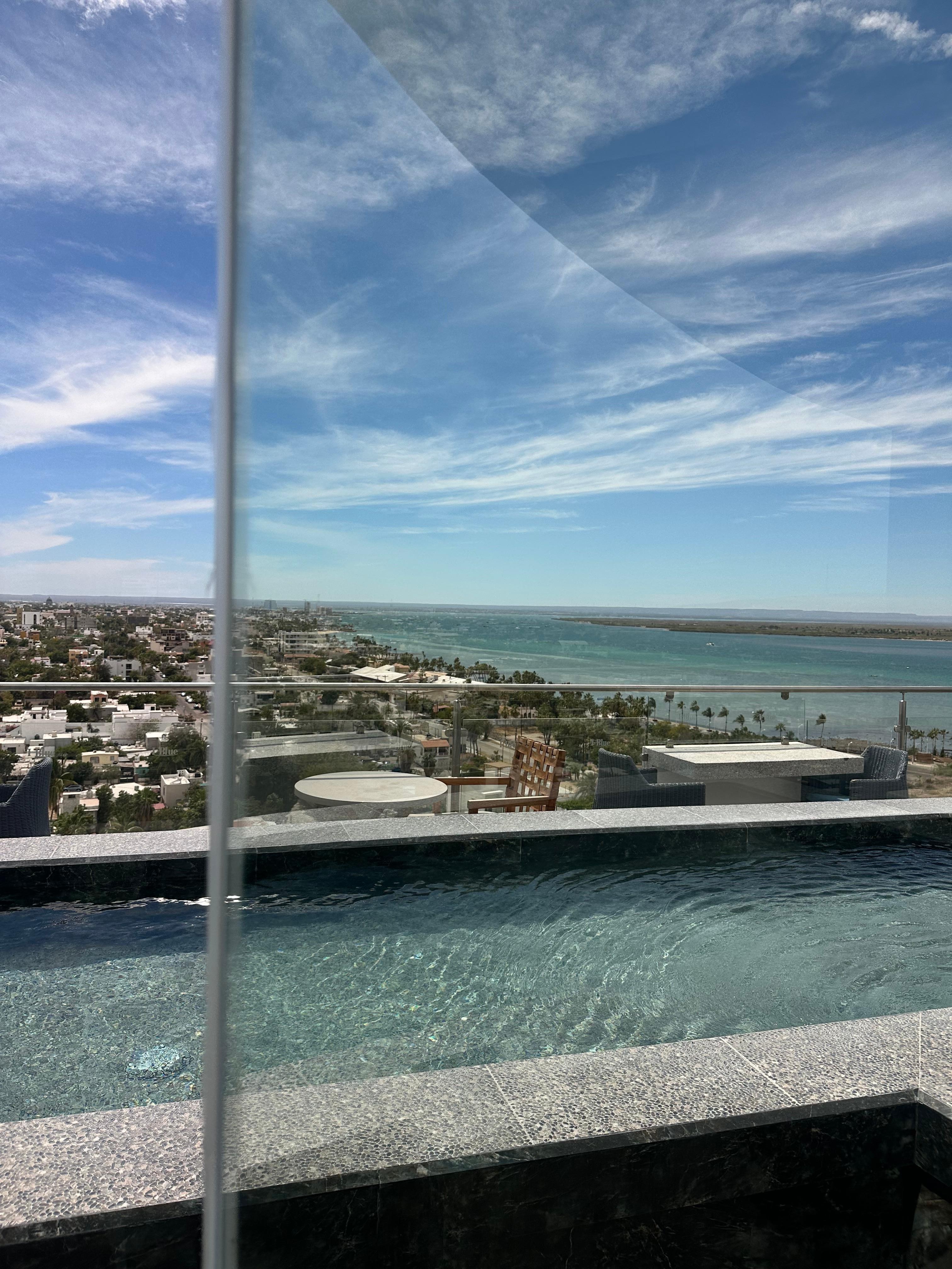 The break-fast buffet was fresh and delicious. Our room was clean and comfortable. The beds were very large and comfortable. We slept well. We had a partial ocean view from our balcony. We only recommend that this hotel add a full size pool for families to enjoy. La Paz weather is hot but can be enjoyable.