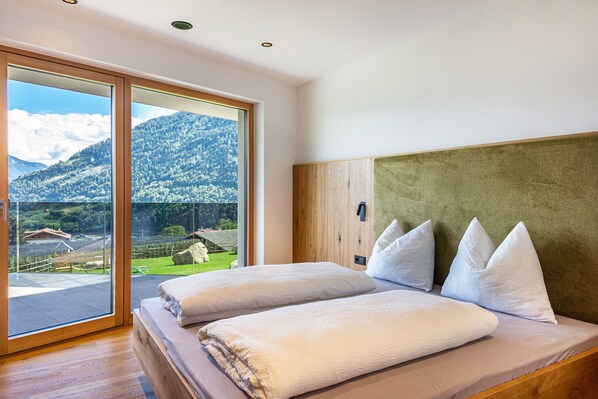 De moderne vakantiewoning Hofer Hof MUT is gelegen in Lagundo/Algund en kijkt uit op de bergen.