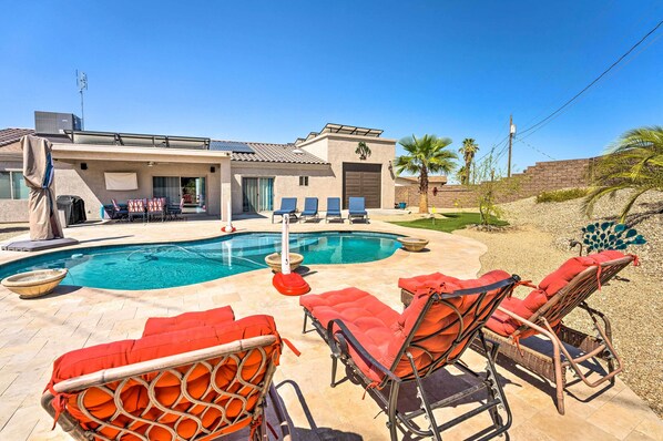 Visit one of Arizona’s most popular destinations and bring or rent your favorite watercrafts to experience Lake Havasu first-hand. Treat yourself and your companions to a stay at this tastefully appointed 3-bed, 2-bath vacation rental featuring a private yard, pool, grill, covered patio, and views of the mountains and lake. With attractions like Havasu Lake, London Bridge, Crazy Horse Campgrounds, and Lake Havasu State Park less than 4 miles away, you can hit all the hot spots during your stay.