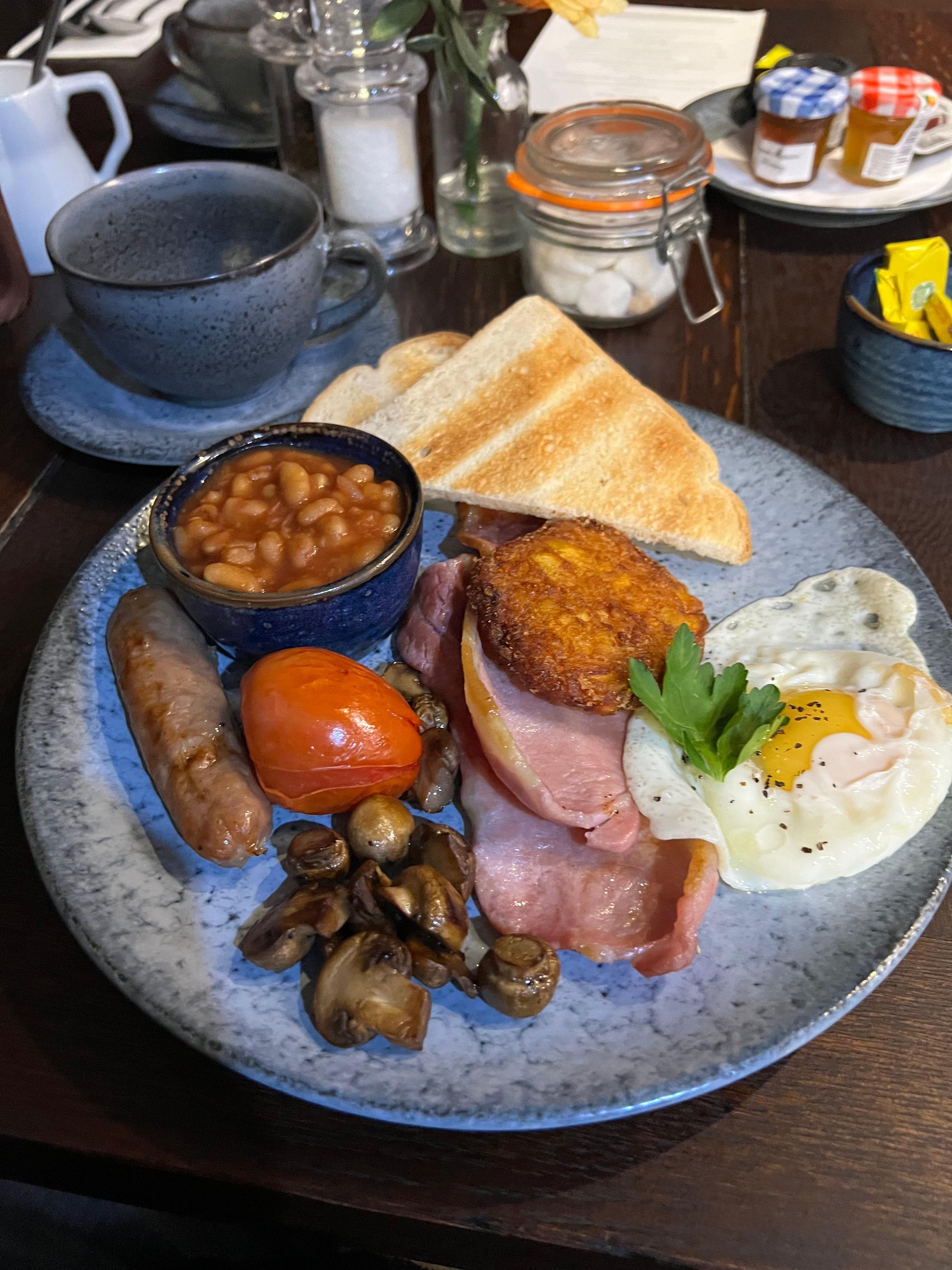 Are warm and friendly welcome on arrival. Our room was large and had all the comforts we needed good selection of tea/coffee/hot chocolate and biscuits large bed lovely clean and soft towels. It’s a 15th century building with flipping floors low ceilings etc but that just added to the charm. We had a drink in the bar and it was clearly a pub used by the locals who made us feel welcome. We did dine in the restaurant on our first night and yet again the food and service was excellent. Breakfast the following morning was very good lots of choices and all arrived piping hot and with more friendly smiles. Overall a great choice would definitely stay again