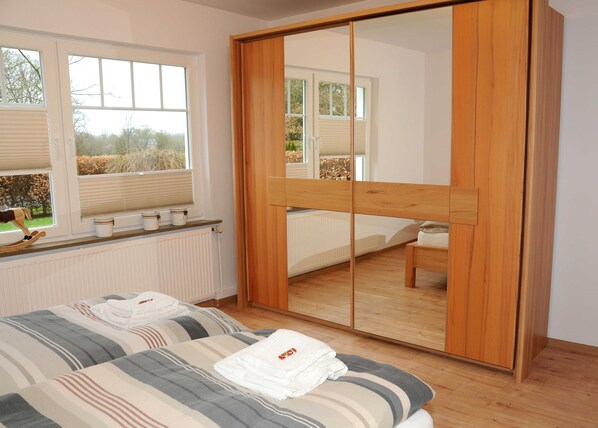 Appartement Landliebe unnern: Onze begane grond begane grond appartement is ongeveer 85 vierkante meter en van hoge apparatuur. De badkamer is ruim met 12 m², inclusief een inloopdouche met grote ingang, toilet en bad, een föhn is ook beschikbaar. Op de begane grond zijn er twee comfortabele, modern ingerichte slaapkamers met tweepersoonsbedden en een nieuwe, volledig uitgeruste, modern ingerichte keuken incl. Vaatwasser, wasmachine, elektrisch fornuis met oven, magnetron, eierkoker, koffiezetapparaat en broodrooster, naar de open keuken is verdeeld de woonkamer met lederen meubels (3-2-1), knuffelige kussens en dekens, flatscreen-tv en stereo. In het hele huis 100 Mbit WLAN. U bent van harte welkom om door verschillende boeken te bladeren, we bieden romans, thrillers en kinderboeken. De bedden zijn opgemaakt, theedoeken en handdoeken en badhanddoeken zijn aanwezig. U vindt er ook een droogrek, een strijkplank en een strijkijzer. Voor onze kleine gasten zijn een babyreisbedje en een kinderstoel beschikbaar. Huisdieren zijn welkom in ons appartement op de begane grond. Roken is niet toegestaan in het hele huis.