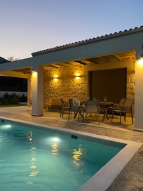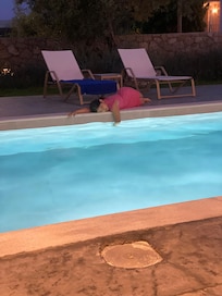 Ja, deze accommodatie heeft een seizoensgebonden buitenzwembad.