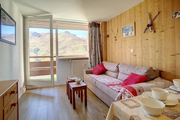 Op 150m van de ski piste, 3e verdieping, uitzicht bergen, televisie, ski-kluis, 36m², Les Menuires