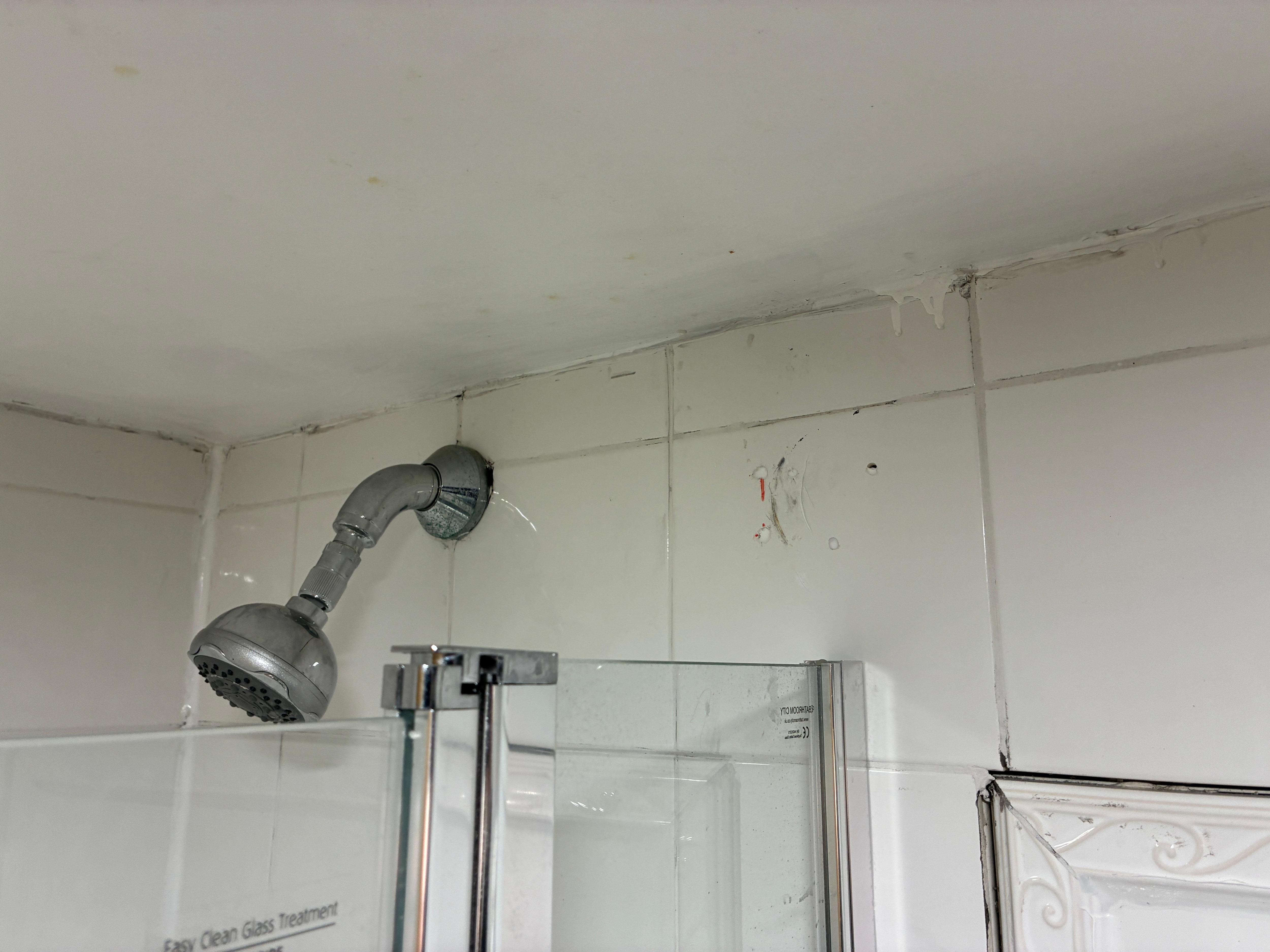 This morning whilst trying to shower it was impossible. The shower head was completely broken with water gushing out in all directions, all over the bathroom floor. The water was coming from the seal between the pipe and the shower head.