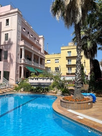 Het seizoensgebonden zwembad is geopend van juni tot september.
