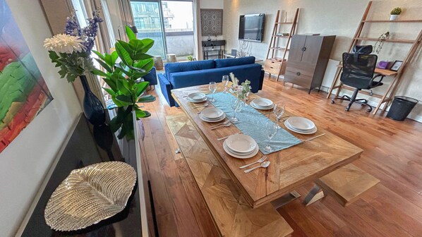 I recommend upgrading the television to a smart television, securing the mirrors, so they will not fall upgrading the lighting, so you can see better, especially in the main restroom. Also maybe a rug in the living room