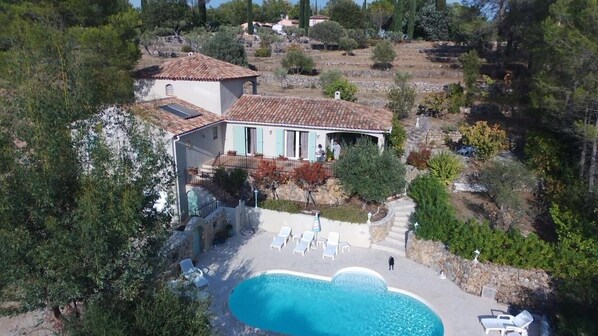 Provençaals huis rustig prive zwembad omheind land in het midden van een boomgaard 4000m