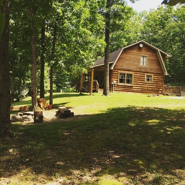Wild-Vines blokhut werd gebouwd in 2006 met familie en vriendelijke uitjes en bijeenkomsten in het achterhoofd. We wilden een plek waar mensen konden komen als een vredig toevluchtsoord van hun dagelijkse leven en gewoon van de natuur konden genieten. Er is GEEN WIFI in de cabine en beperkte celontvangst. Je hebt het wel, maar afhankelijk van de provider een aantal beter dan anderen. Toegegeven, je bent slechts 5 mijl van de stad en .06tenths van een mijl van de hoofdweg met een grindpad rijden naar je comfortabele thuis ... maar je kwam om te ontspannen. Er zijn alle gemakken van thuis en meer directe tv, alle kleine apparaten, hot tub, om er maar een paar te noemen. Plus houtskoolgrill voor de buiten de deur jongens en de vuurplaats voor familie kampvuren. Je bent slechts een korte wandeling naar de visvijver gedeeld door alle gasten ... die ook een overdekt paviljoen met grill, speeltuin, nieuw prieel en trouwlocatie binnenkort heeft.