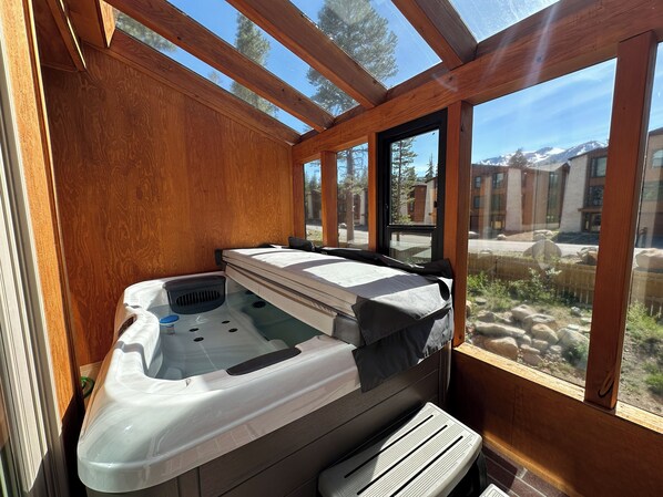 Dit stadshuis met 2 slaapkamers en 3 badkamers in Mammoth Lakes, Californië, ligt in het bos aan de Sierra Star Golf Course en een wandel- / fietspad. Dit prachtige herenhuis in bergstijl is ingericht met veel detail. De master suite met hemelbed is een romantisch toevluchtsoord en heeft een eigen afgesloten jacuzzi! Deze eersteklas unit met 2 slaapkamers / 3 badkamers is geschikt voor 4 tot 6 personen, beschikt over snel draadloos internet en ligt dicht bij de stad en is in de winter slechts een korte wandeling naar de pendeldienst. Alle gasten van Mammoth Sierra krijgen gratis volledige toegang tot Snowcreek Athletic Club om te genieten van faciliteiten zoals een verwarmd binnenzwembad, stoom / sauna, volledige fitnessfaciliteiten, yoga, pilates en fietsstudio en meer. 1200 m² met maximaal 2 parkeerplaatsen. GEEN MOTORHOMES OF AANHANGWAGENS. Gasten krijgen twee parkeerkaarten. Als er meer parkeergelegenheid nodig is dan wat is toegewezen, kunt u ons kantoor bellen voor alternatieve opties. Woongedeelte: tweepersoons slaapbank, flatscreen-tv / dvd, grote keuken met hoge toonbank en barstoelen, eethoek, stenen houtkachel, terras, wasmachine / droger en 3/4 bad. Master: Canopy queen bed (Flatscreen TV) en complete badkamer Slaapkamer # 2: Twee aparte bedden (Flatscreen TV) en complete badkamer Maximale bezetting: 6. Onze kalender wordt in realtime bijgewerkt. (TOT Certificaat # 7020) Eenheidscode = FRC16