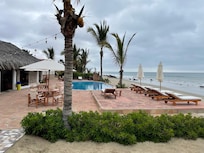 Aan het strand, met een buitenzwembad