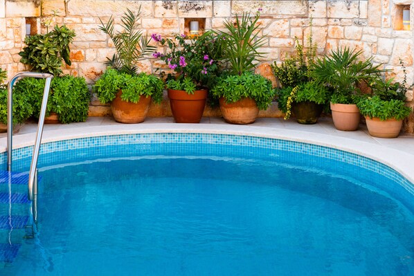 De toegangspoort tot het private parkeerplaats is met afstandsbediening en biedt een comfortabele en veilige parkeerplaats voor twee auto's. Binnenplaats heeft 574 m2 en is volledig omheind. De tuinmeubelen zijn ook beschikbaar. Op de binnenplaats is er een stenen open haard. Het zwembad is 7,4 miljoen x 3,6 m hoog. Naast het zwembad is er een toilet, een buitenkeuken met een koelkast en een overdekte douche. Het huis beschikt over draadloos en direct - telefoonlijn. Het huis is geschikt voor huren in de winter als in de gehele woning is voorzien van vloerverwarming,