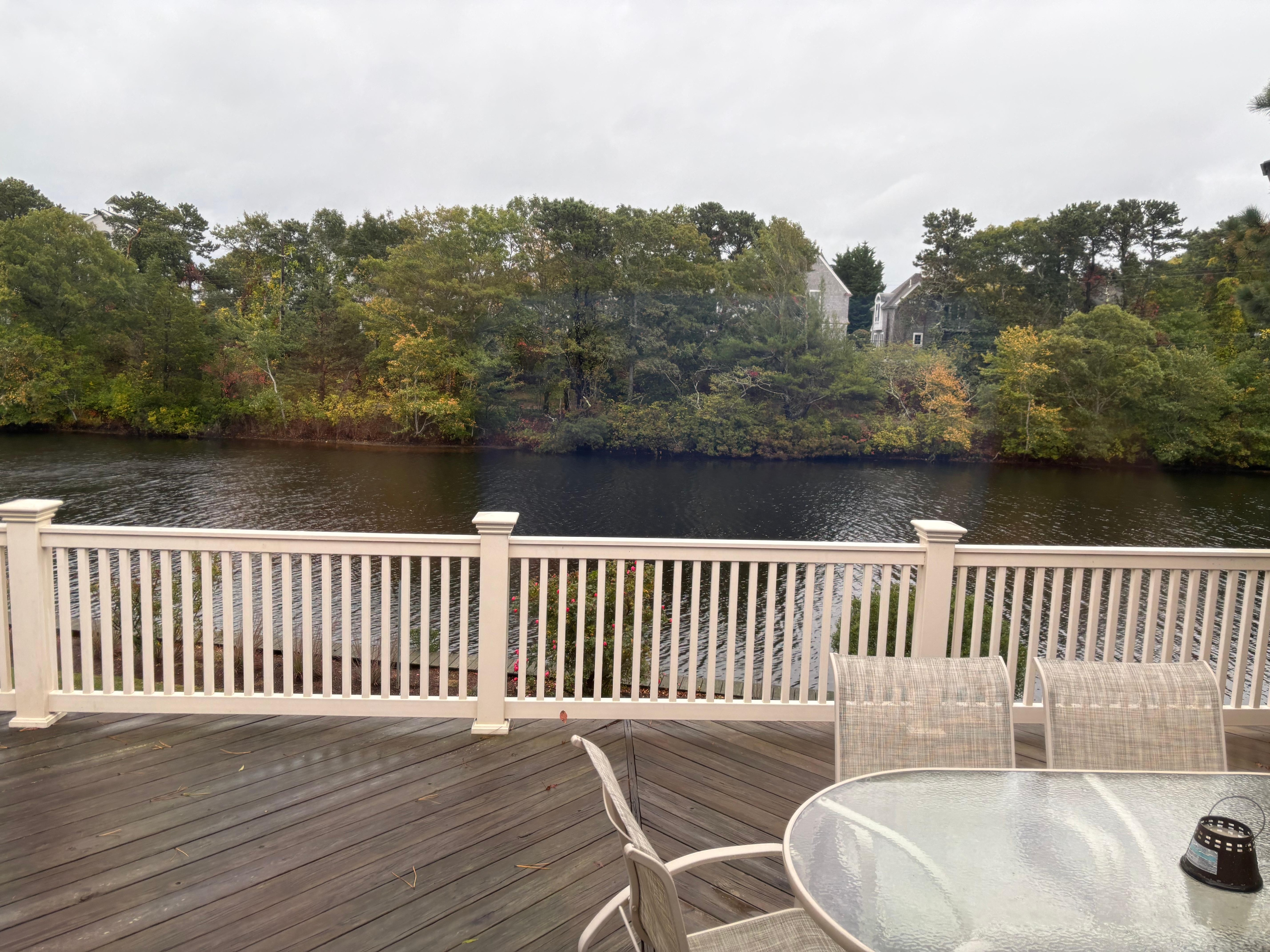 We stayed at this property with our adult children and their partners over a five day period for my son's Cape Cod wedding. The house is very clean and was large enough to accommodate everyone with plenty of space for all to move around. We were there in the fall over Columbus Day weekend and the neighborhood was quiet. The back deck is large and since we were fortunate enough to have a few days of beautiful weather, we spent time on the deck enjoying an absolutely beautiful view. The kitchen is well stocked. We loved having the sheets and towels provided so that we did not have to haul them with us. Most importantly, the communication from the host was excellent! Would definitely return to this home and would recommend without hesitation.