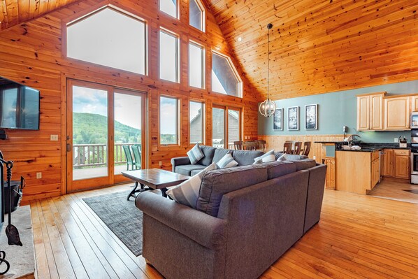 Live “All In” for every moment of this 4-season luxury chalet surrounded by the awe-inspiring landscapes of the Deep Creek Lake area. Just 5 minutes from Wisp, “All In” isn’t just a name – it’s a promise of an all-encompassing experience that caters to all your needs. Quickly let go of stress and embrace rejuvenation in the shimmering indoor heated pool, the bubbly bliss of the inviting hot tub or detoxify and decompress in the dry sauna. The location is also just a two-minute walk to the community lake access - perfect for a day of paddle-boarding, kayaking or rent a boat to explore the lake. Every aspect of “All In” has been carefully curated to ensure a memorable experience, from the indulgent comfort of the bedrooms to the fully-equipped kitchen ideal for culinary exploration. Unwind in style with cathedral ceilings and a wall of windows that give a view of Wisp Mountain and Deep Creek Lake. Step onto the large deck where you can breathe in the fresh air or smell the mouthwatering aroma of juicy burgers sizzling on the grill. Whether you’re indulging the natural beauty of Deep Creek or seeking the adrenaline of the slopes and lake life, “All In” is the perfect base for every pursuit. Level up your leisure time in the lower level den and game area – the perfect fusion of relaxation and entertainment. The sleek pool table is at the center of fun. Refreshments are just an arm’s length away in the wet bar including a fridge for your ice-cold beverages. Stock up on your favorites and enjoy the ease of making a drink or grabbing a snack without ever needing to pause the fun. The den boasts a large TV on a beautiful stone fire place ideally situated for watching the big game or having a movie marathon.