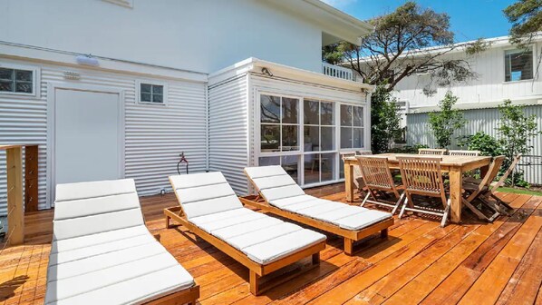 The house is perfect for one to two families to stay. Landscaped back yard with decked area including outdoor dining and sun loungers. The property is fully fenced for families.