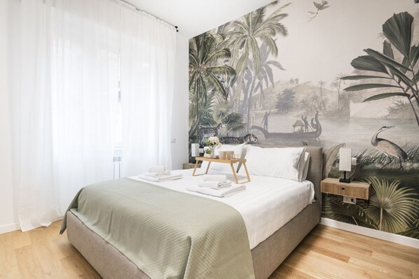 In the lively Wagner district of Milan, this new apartment emerges, an urban refuge that combines elegance, comfort and a rare and precious outdoor space in the heart of the city. The apartment opens onto a bright open space, where the kitchen, modern and fully equipped with latest generation appliances, blends harmoniously with the living area. The latter, designed for relaxation and conviviality, includes a welcoming dining area, a comfortable sofa bed ideal for guests and a large smart TV for evenings of entertainment.
