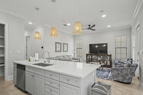 Experience a magnificent vacation home nestled in the Villa Lago neighborhood of Sandestin. This beautifully updated 4-bedroom, 4-bathroom residence comfortably accommodates up to 10 guests. The home features thoughtfully appointed guest bedrooms with a king bed, a queen bed, and a room with two twin-over-twin bunk beds. Upstairs, the premium primary suite offers a relaxing retreat with a king-sized bed. Unwind in the spacious open concept living area, designed to make you feel right at home after a fun day in the sun. The modern, fully equipped kitchen showcases updated appliances and provides the perfect space to prepare memorable meals. Step outside to the private patio, ideal for outdoor dining or grilling and enjoying the coastal breeze. Villa Lago 1919 promises an unforgettable vacation experience for you and your guests on Florida’s beautiful Emerald Coast.