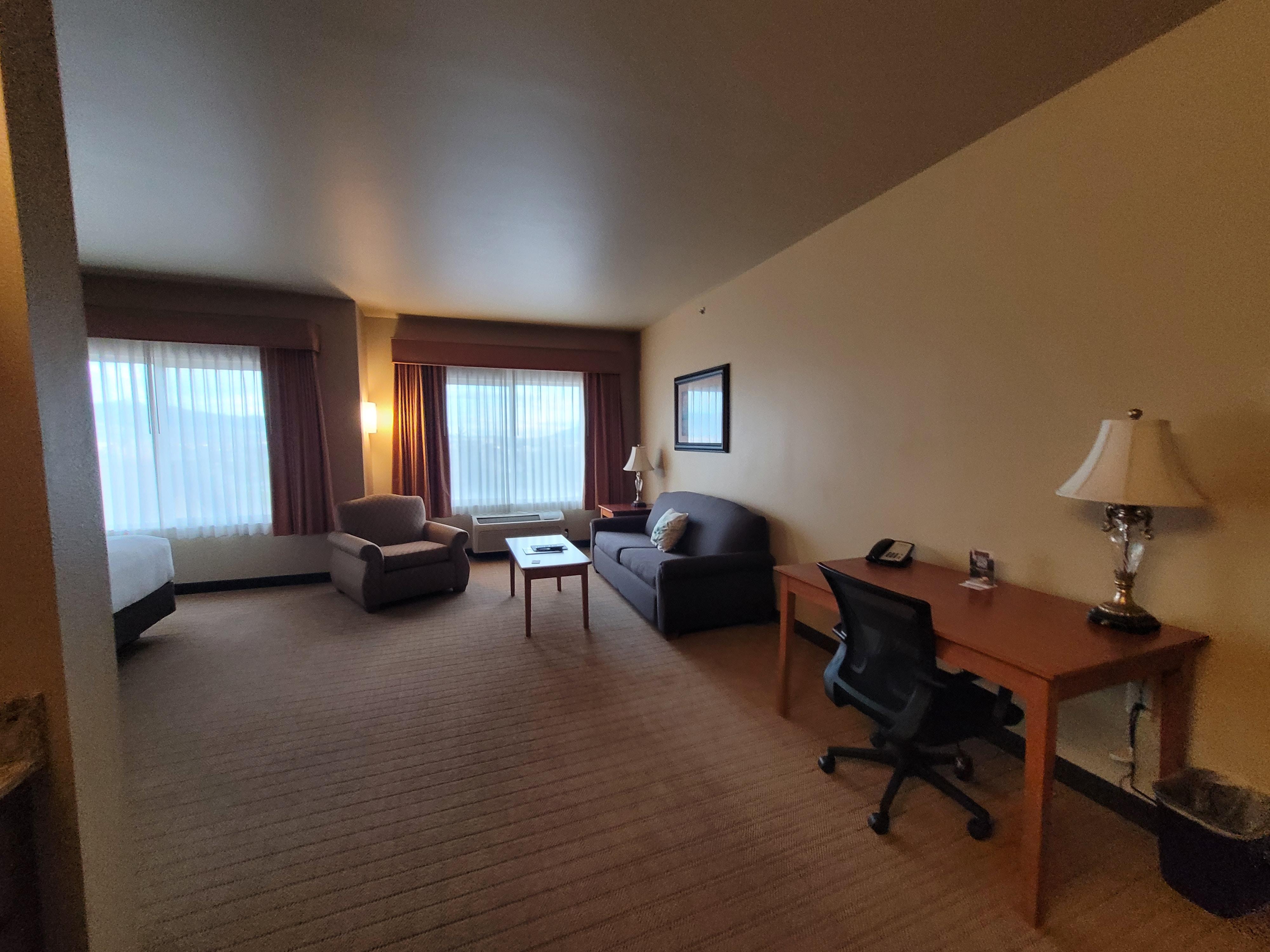 Great place very clean and accommodating. Besides the front desk clerk that was very unfriendly and even mean to the kids having fun in the pool. Even made unkind remarks about them when I checked in not having known I was with the group already there. Spoke extremely unprofessionally about needing to “yell at them like a drill sergeant.” He was a young guy and I’m sure not very experienced with young ones but the dude had no reason to be so rude to such little kids that were obviously behaving like kids in a pool, maybe too loud for him it seems. Otherwise 10/10 great place. 6/10 for his handling of things and unfortunately will not bring our wrestling team back to stay there in the future.