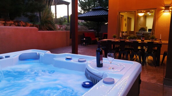 Word wakker met een kopje koffie op het bovenste niveau dat rond het huis loopt en een panoramisch uitzicht biedt. Het is ook een geweldige plek om je dag te eindigen, nippen aan een glas wijn en kijken naar de sterren die hierboven fonkelen.