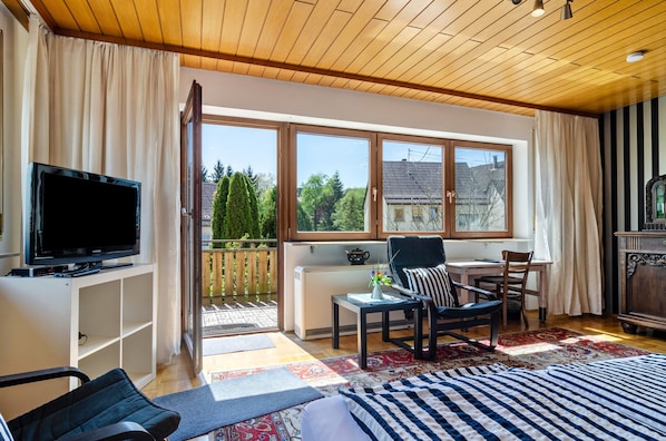 Von der Kommunikation bis zum Empfang war es sehr einfach und freundlich. Frau Jäger hat uns persönlich kontaktiert.Die Unterkunft ist zwar an einer Straße gelegen, doch das Mühlenbächlein rauscht vorbei und der Storch im Nest nebenan, die Umgebung zum Spazieren sind wunderschön. Die Ausstattung ist ein wenig in die Jahre gekommen und dennoch war es gemütlich und für uns ausreichend, großzügig und hell gestaltet. Es war alles vorhanden, was wir brauchten. Ein Wäscheständer auf der Terrasse für die Handtücher/Fön war auch da. Da es im September doch schon kühl war. Ich vermisse immer Haken in Ferienwohnungen und Hotels zum Aufhängen/Lüften meiner Kleidung. Wir kommen bestimmt wieder, denn wir waren sehr zufrieden. Vielen Dank.