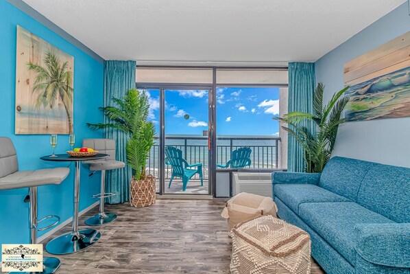De zoektocht naar uw volgende vakantie stopt hier! Bekijk dit 8e verdieping, direct oceaan appartement in het Landmark Resort in Myrtle Beach. Deze studio is volledig ingericht met 1 kingsize bed en 1 volledige slaapbank. Een natte bar, een complete badkamer en een eigen balkon met direct uitzicht op de oceaan zijn ook inbegrepen. Deze unieke lay-out biedt extra grote leefruimte voor onze gasten. Andere accommodaties in het resort zijn veel kleiner, maar deze indeling heeft een open plattegrond en voelt niet krap aan! Onze gasten genieten van het hebben van de bank waar ze kunnen ontspannen en genieten van zowel het uitzicht op de oceaan, evenals de tv. De natte bar heeft een gootsteen, kastruimte, een magnetron en een koelkastje! Het Landmark biedt tal van voorzieningen, waardoor het een zeer gewilde, 1-stop shop is voor zoveel bezoekers. Het resort biedt binnen- en buitenzwembaden, bubbelbaden, luie rivieren, bars, restaurants, wasfaciliteiten, arcade en nog veel meer.