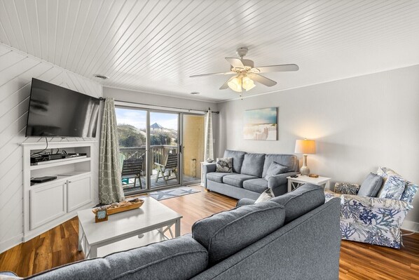 You can take a refreshing swim in the community pool (available seasonally) or enjoy a sun-soaked afternoon playing tennis on-site. The fully equipped kitchen is perfect for preparing family meals or packing snacks for a day at the beach.