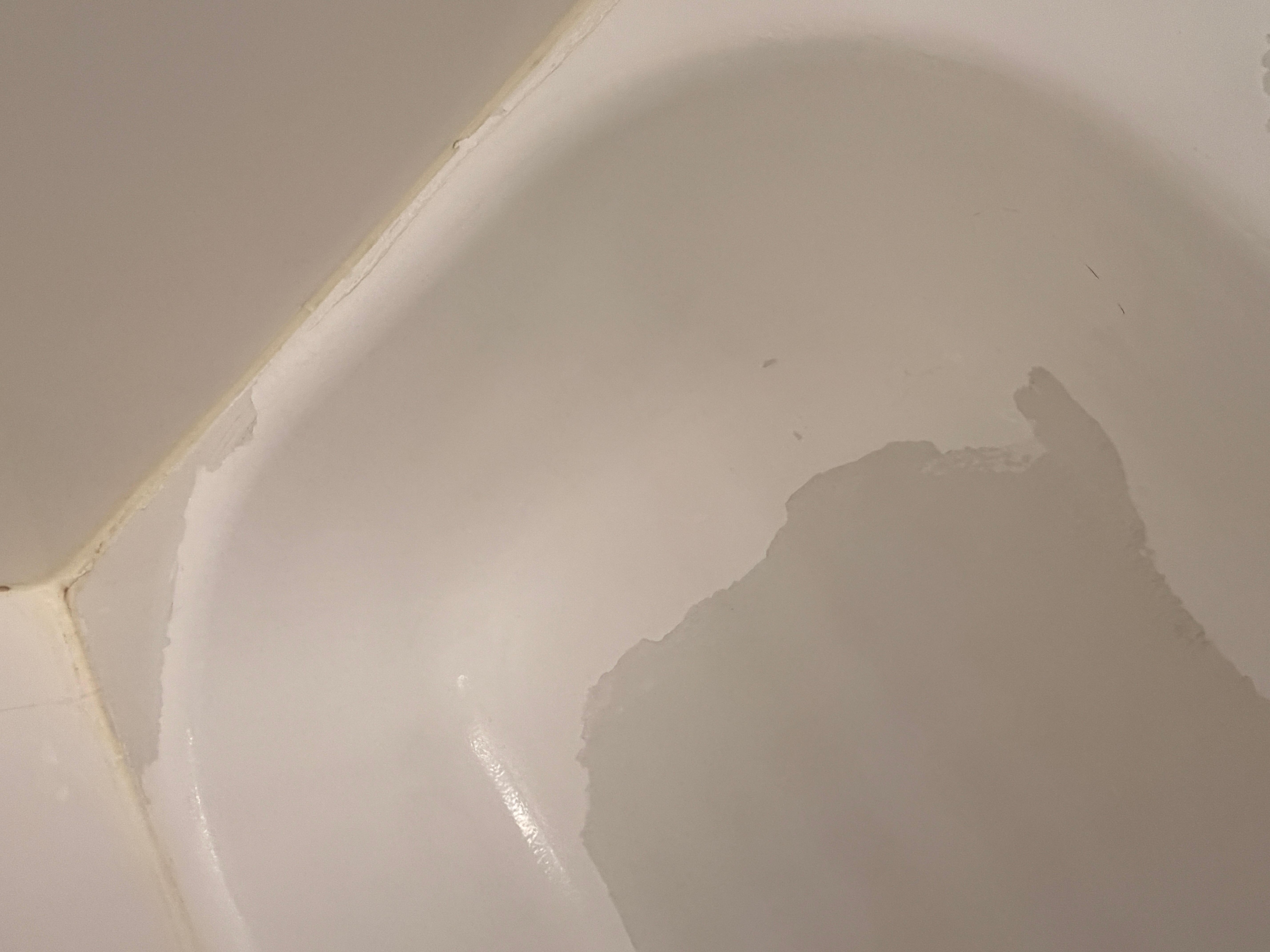 Damage in bath tub and window sils on inside.